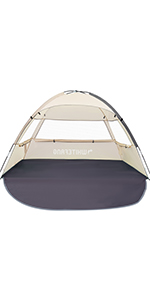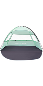 Omni-directional Zipper for Added Privacy: Our beach tent uses omni-directional zipper design. It allows you to open and close the floor mat from the inside, outside, and as well as from both sides. It’s very convenient to get in and out. The extended front floor provides extra room for more activities, which can be zipped up when you need extra private space, or are away from the tent.