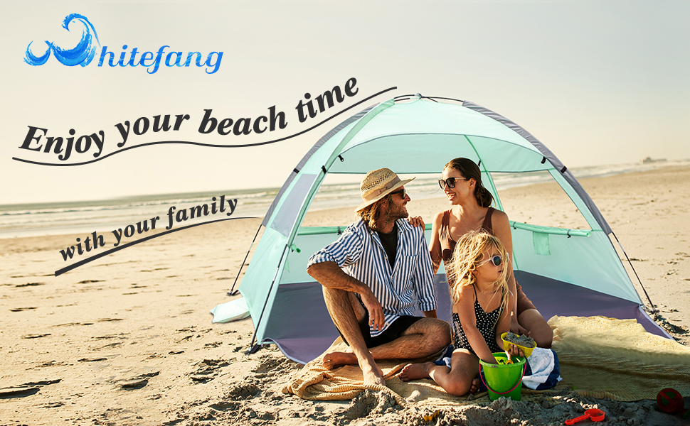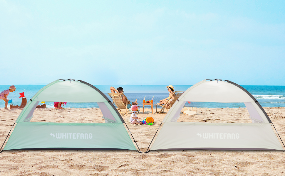 UPF 50+ Protection & Excellent Ventilation: Our beach tent is made of premium 210t sun-proof material coated polyester, it can effectively block heat and 98% of the harmful UV rays. 3 super large roll up mesh windows increase airflow and reduce the temperature. It helps keep summer’s scorching heat away from your family and allows you to enjoy the oceanic breeze with a comfortable space.