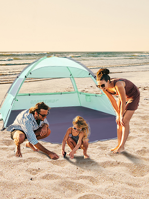 Omni-directional Zipper for Added Privacy: Our beach tent uses omni-directional zipper design. It allows you to open and close the floor mat from the inside, outside, and as well as from both sides. It’s very convenient to get in and out. The extended front floor provides extra room for more activities, which can be zipped up when you need extra private space, or are away from the tent.